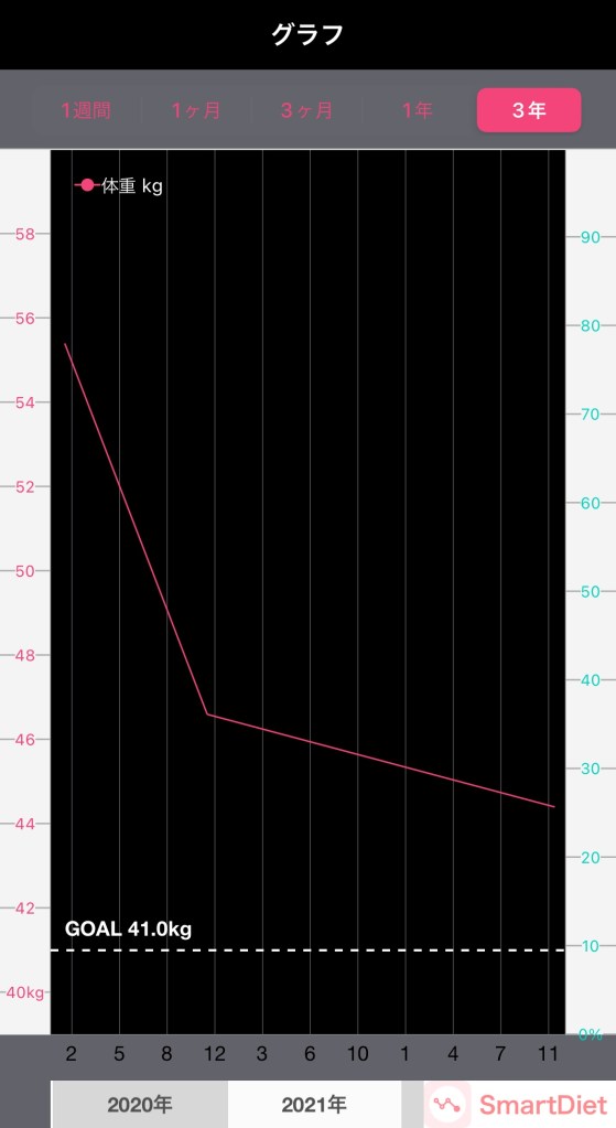 ★記録をつけ始めたのが2020年からで。途中からのダイエットグラフです。