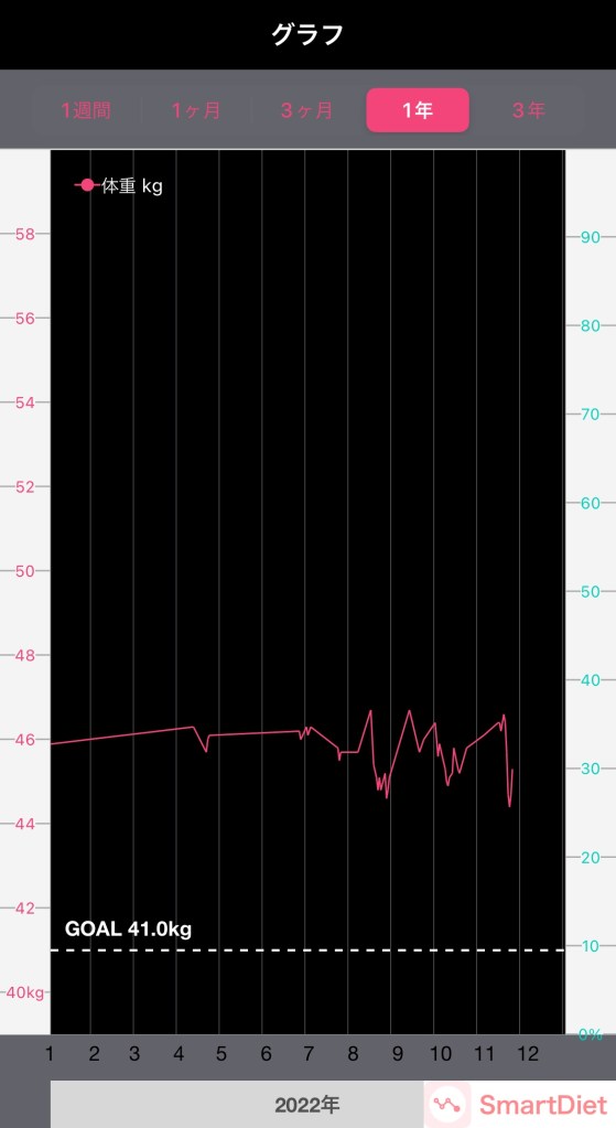 2022年現在は45〜46キロ代をそのときの体調もあったり行ったり来たりしています。